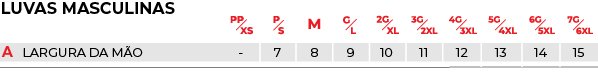 • Palma da mão com material que melhora o grip na manopla;